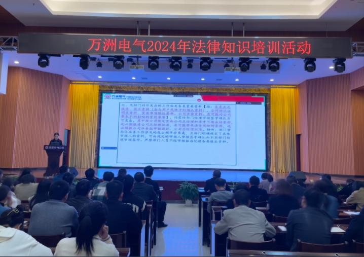 10月24日,萬洲電氣全體干部、市場大部、產品大部等相關部門人員70余人集聚一樓多功能廳參加2024年法律知識相關培訓。