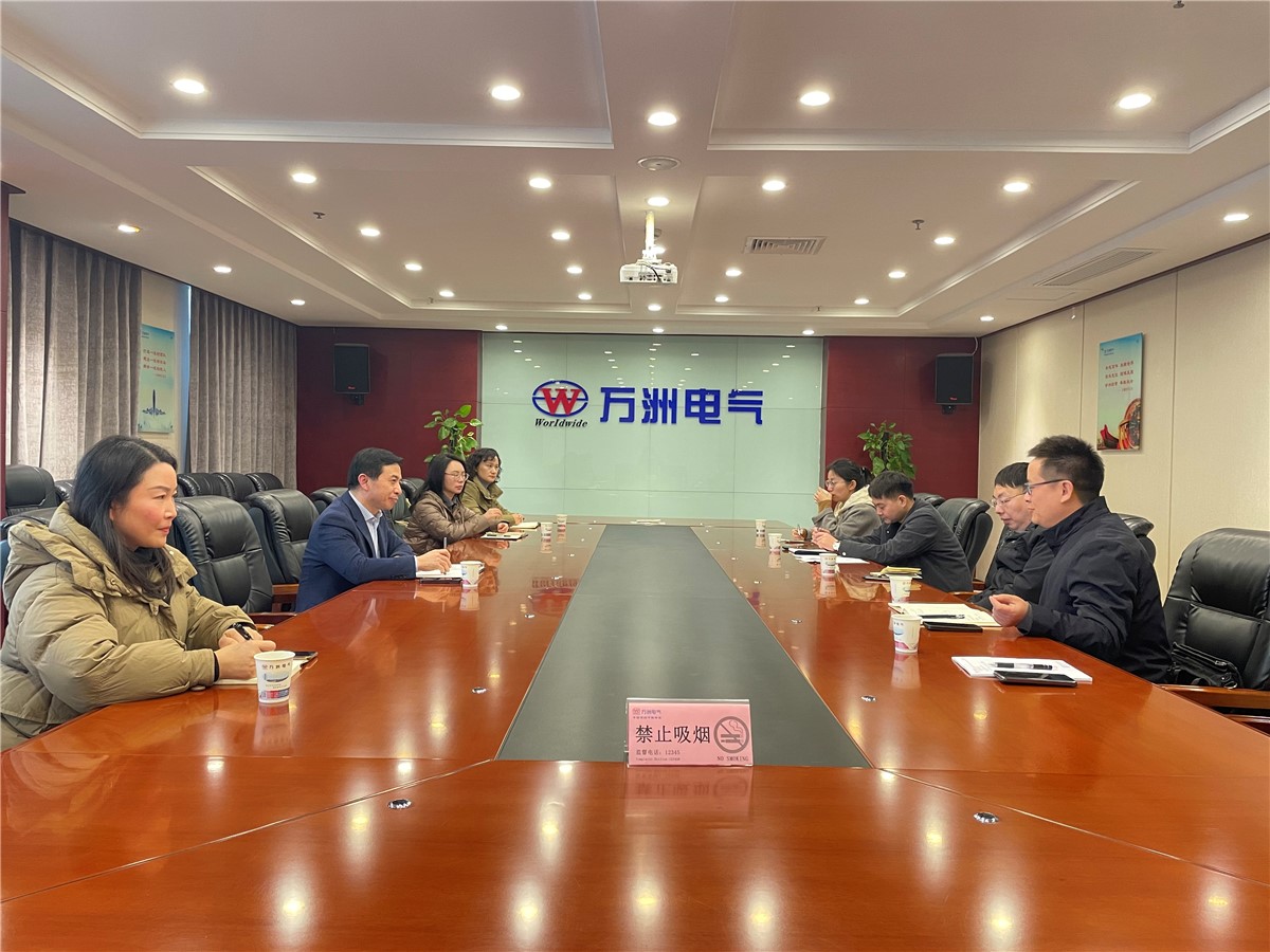 為落實省政府民營企業座談會有關要求,對接座談會所提建議事項辦理有關情況,1月2日下午,湖北省發改委民營經濟處副處長楊文亮專程到萬洲電氣實地調研,萬洲電氣董事長、總經理趙世運接待了楊處長一行。