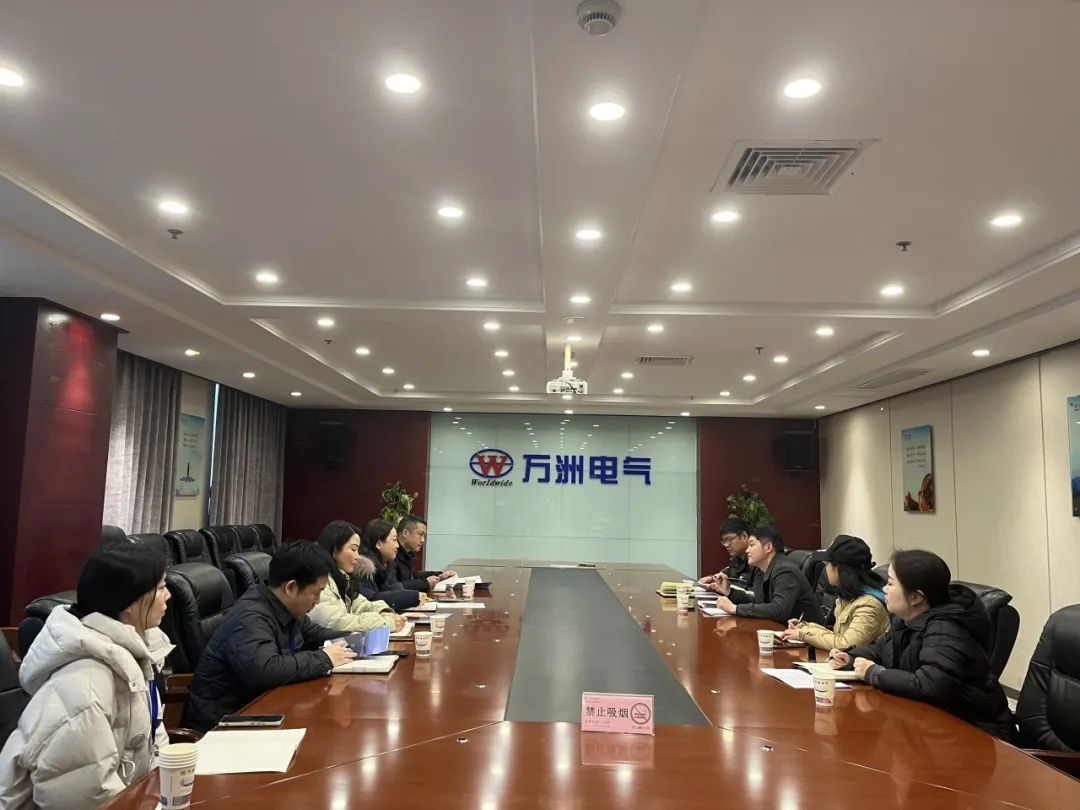 2月20日上午,襄陽人才集團總會計師楊飛等人來到萬洲電氣,深入調研企業人才隊伍建設情況,萬洲電氣總經理助理沈瀟、工會主席、行政部經理熊海娟、研發中心設備研發部經理路寧接待了楊總一行。